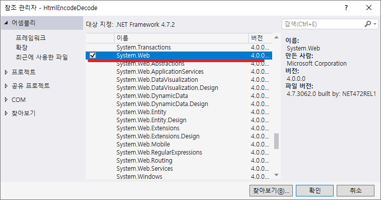 1. HTML Escape 문자를 처리하는 클래스는 HttpUtility인데 네임스페이스는 System.Web으로 참조에 추가하세요.