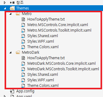 (3) 프로젝트에 Themes 폴더가 생성되고, Metro는 라이트, MetroDark를 다크 테마입니다.