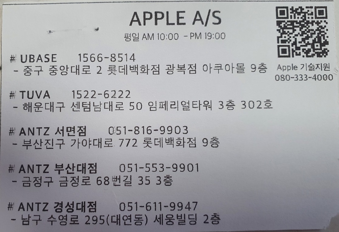 부산에서 맥북, 아이폰 등을 수리 할 수 있는 공식 서비스센터 정보입니다.