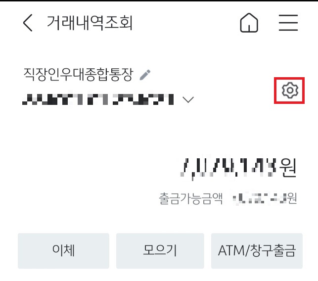 계좌 상세정보에서 오른쪼 상단의 설정(톱니바퀴) 아이콘을 탭합니다.
