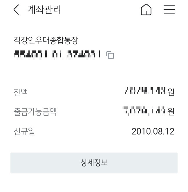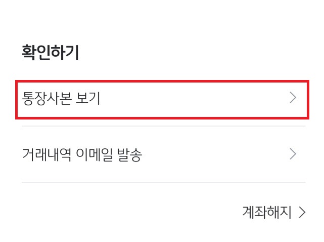계좌관리 화면의 제일 하단에 통장사본 보기를 탭합니다.