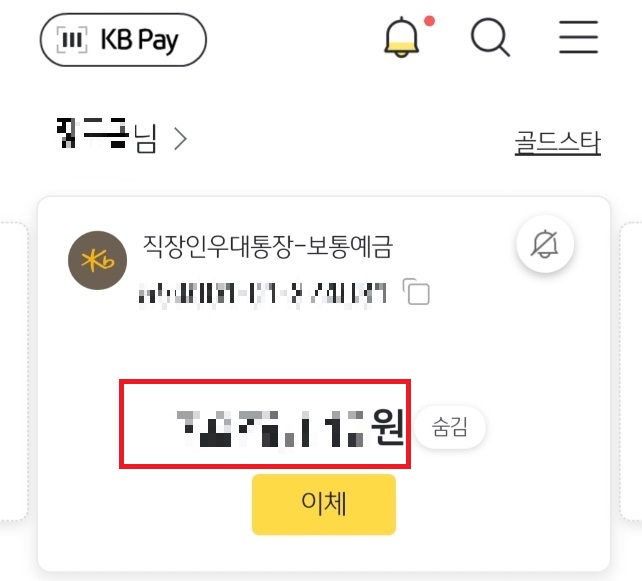 KB 국민은행 앱에서 계좌의 금액을 탭합니다.