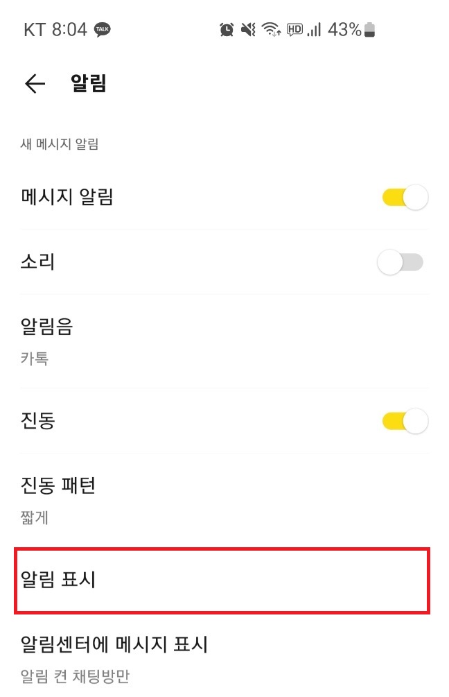 알림 화면에서 알림 표시 메뉴를 탭합니다.