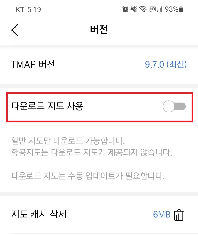 버전 화면에서 다운로드 지도 사용 메뉴를 탭합니다.