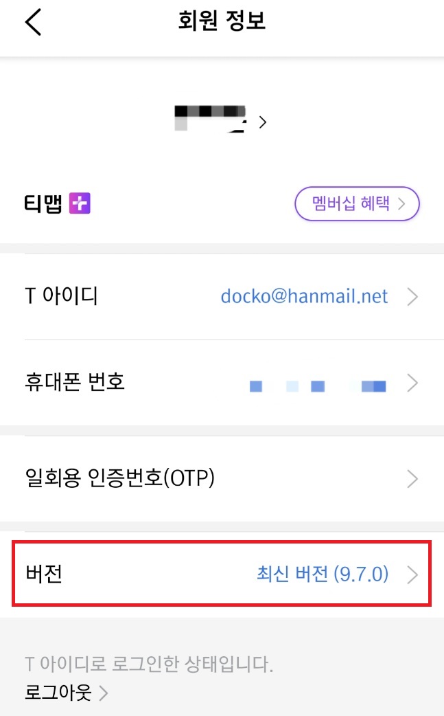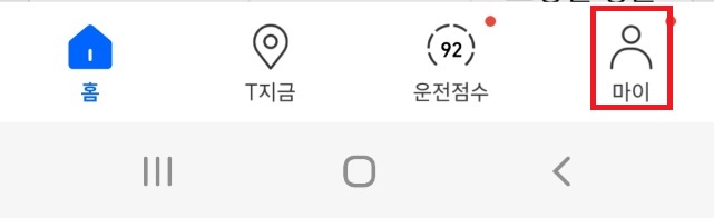 티맵을 실행하고 초기화면에서 하단의 마이 메뉴를 탭합니다.