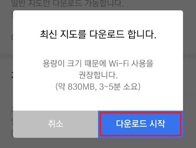 다운로드 시작 버튼을 탭하면, 지도가 다운로드된다.