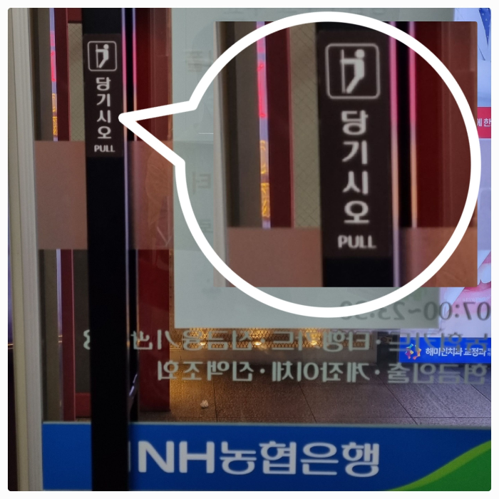 아래의 영상을 보시면 왜 은행의 출구가 "당기세요"인지 알 수 있을 것 같아요.^^