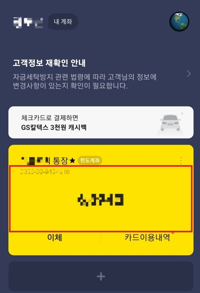 카카오뱅크를 실행하고, 통장(계좌)를 탭합니다.