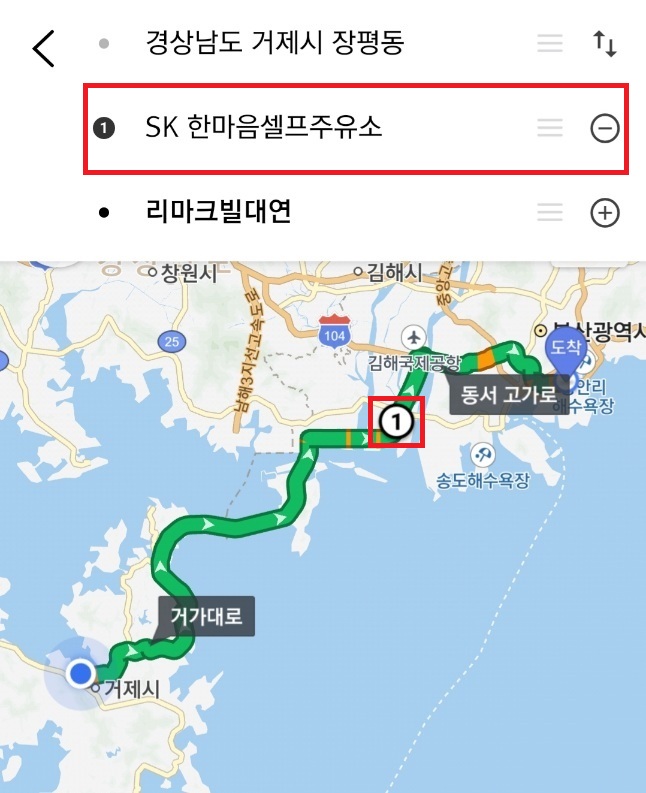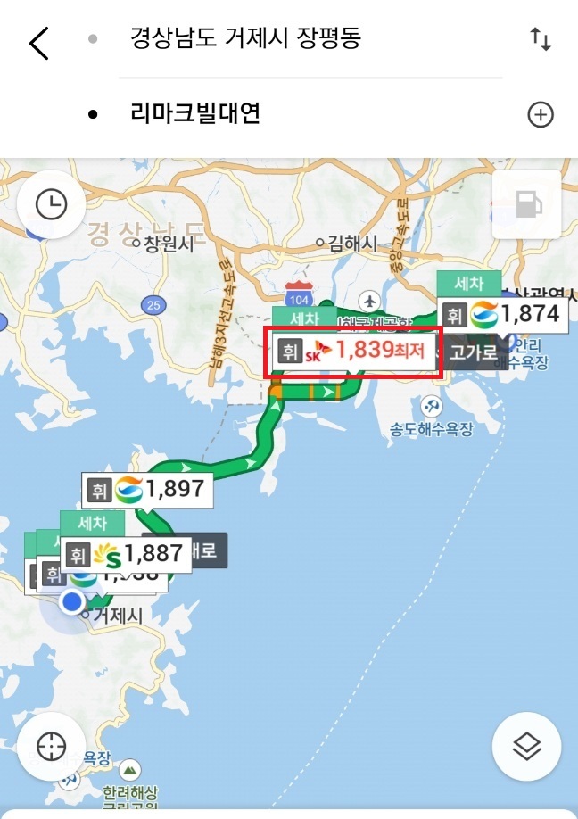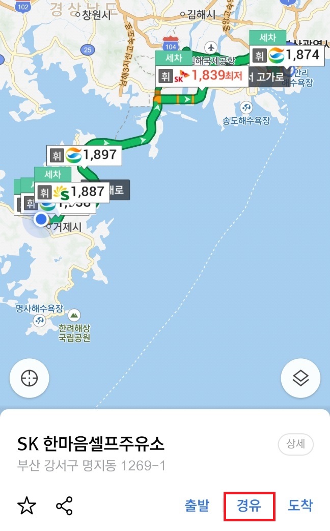 티맵의 경로에 최저가 주유소를 쉽게 경유지로 추가 할 수 있습니다.
