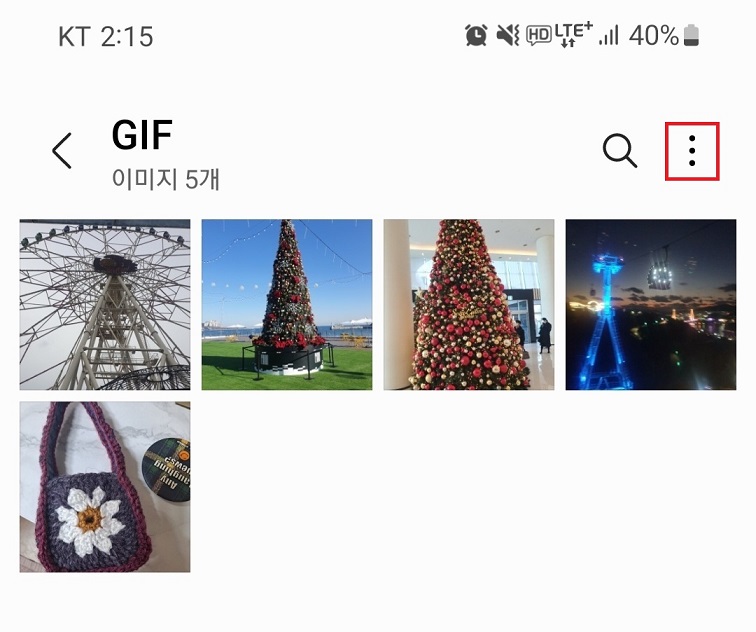 갤러리의 이미지들에서 오른쪽 상단의 메뉴아이콘을 탭합니다.
