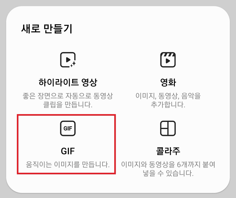 새로만들기 메뉴에서 GIF를 탭합니다.
