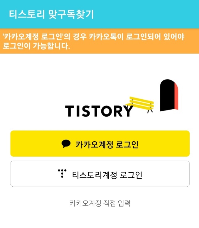 티스토리 맞구독찾기 앱을 실행하고, 티스토리에 로그인하세요.