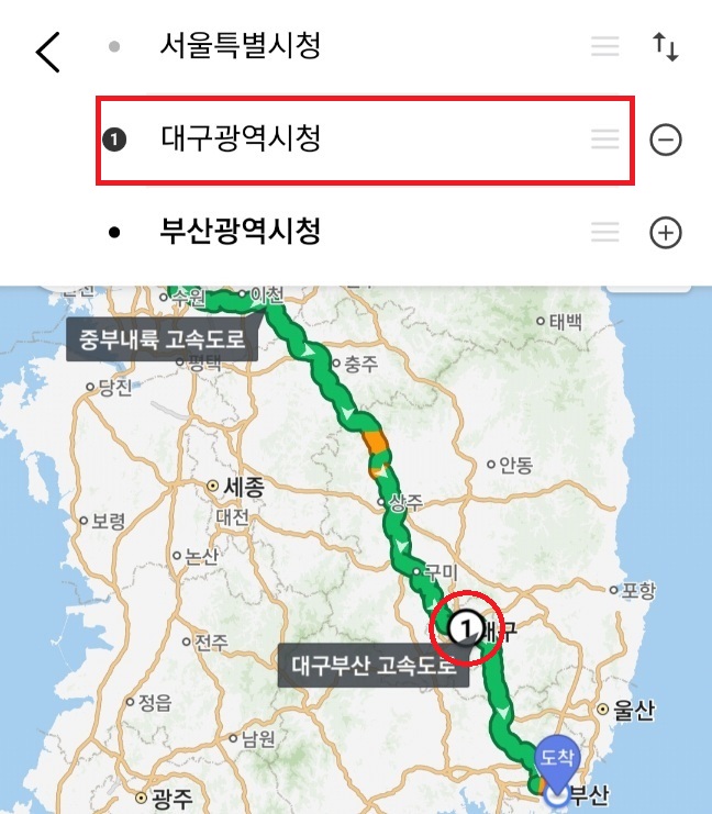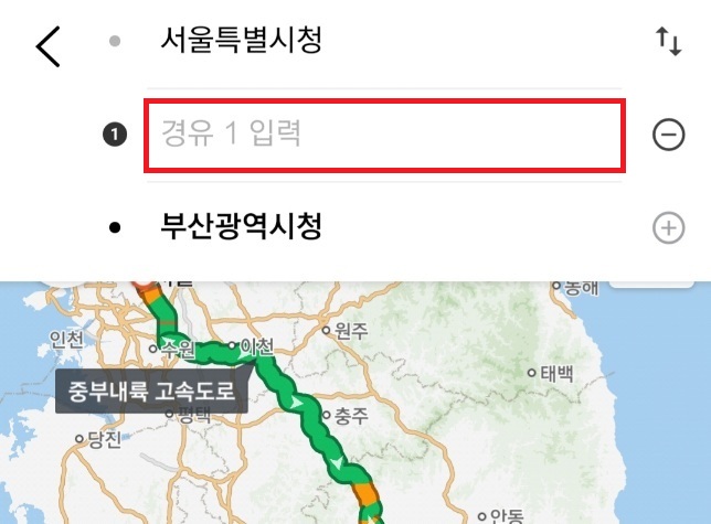 경유지를 검색하고, 검색 된 결과 중 경유지를 탭합니다.