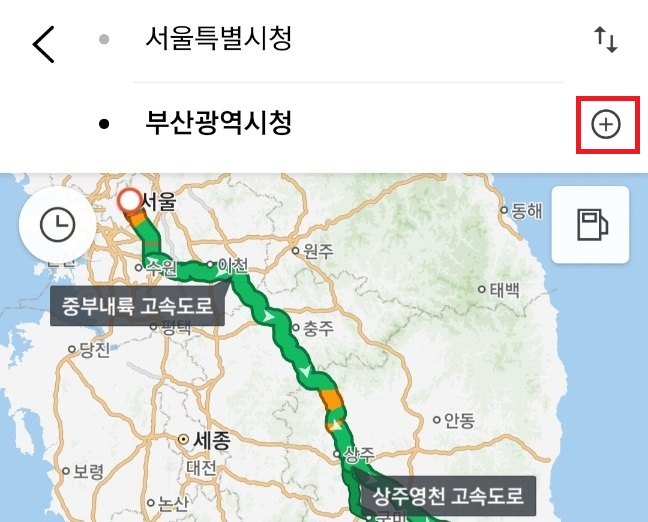 도착지 옆의 플러스 아이콘을 탭합니다.