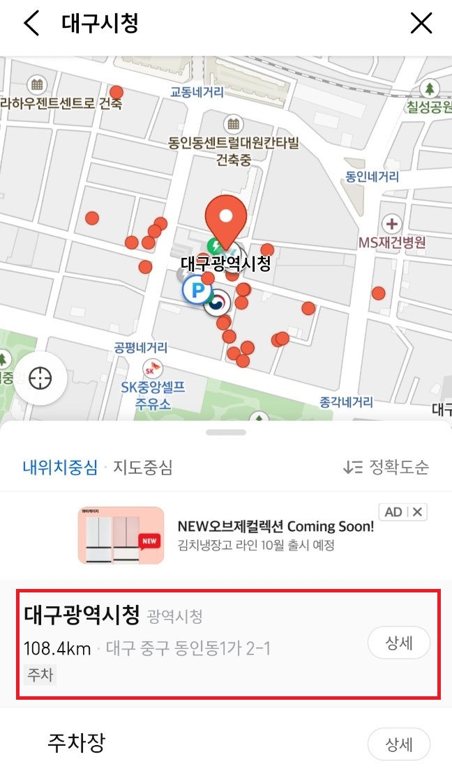 티맵에서 도착지를 지정하고 길찾기를 합니다.